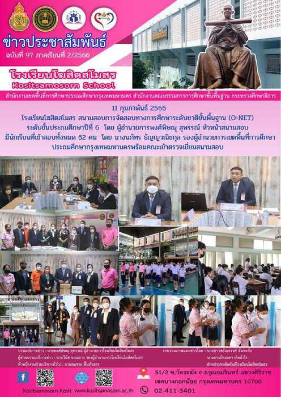 โรงเรียนโฆสิตสโมสร สนามสอบการจัดสอบทางการศึกษาระดับชาติขั้นพื้นฐาน (O-NET)