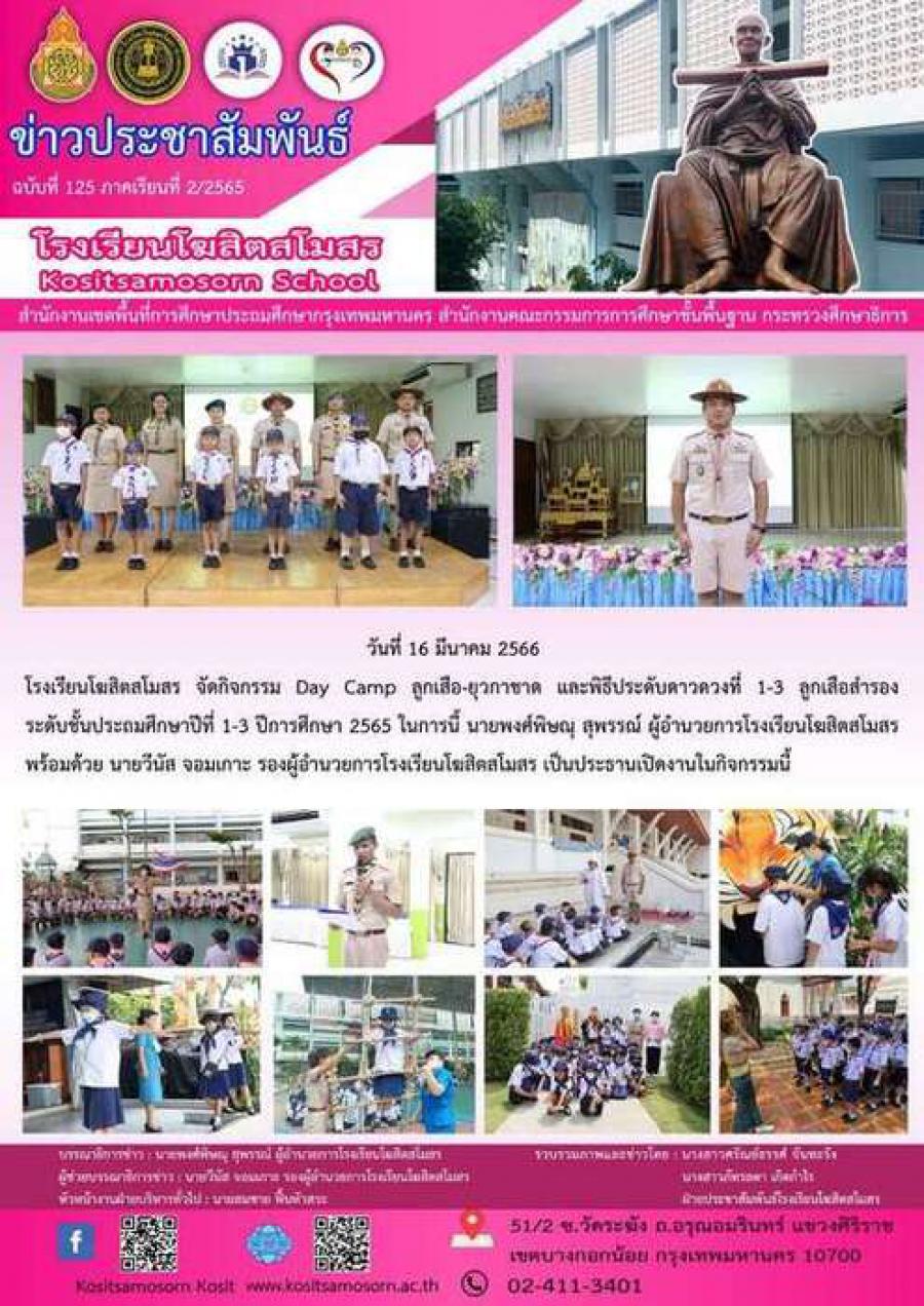 โรงเรียนโฆสิตสโมสร จัดกิจกรรม Day Camp ลูกเสือ-ยุวกาชาด และพิธีประดับดาวดวงที่ 1-3 ลูกเสือสำรอง ระดับชั้นประถมศึกษาปีที่ 1-3 ปีการศึกษา 2565 S:0