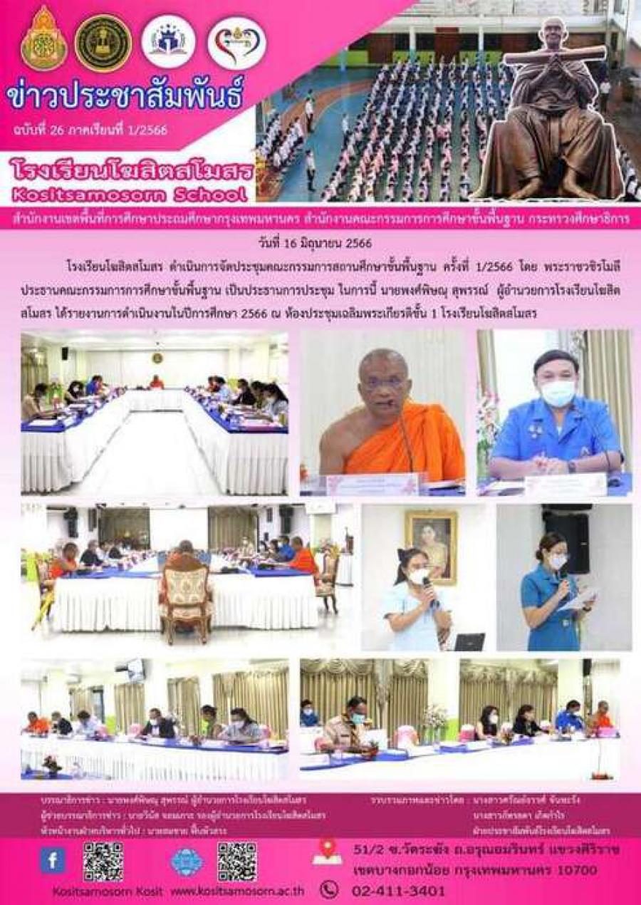 วันที่ 16 มิถุนายน 2566 โรงเรียนโฆสิตสโมสร ดำเนินการจัดประชุมคณะกรรมการสถานศึกษาขั้นพื้นฐาน ครั้งที่ 1/2566 โดย พระราชวชิรโมลี ประธานคณะกรรมการการศึกษาขั้นพื้นฐาน เป็นประธานการประชุม ในการนี้ นายพงศ์พิษณุ สุพรรณ์ ผู้อำนวยการโรงเรียนโฆสิตสโมสร ได้รายงานการดำเนินงานในปีการศึกษา 2566 ณ ห้องประชุมเฉลิมพระเกียรติชั้น 1 โรงเรียนโฆสิตสโมสร S:0