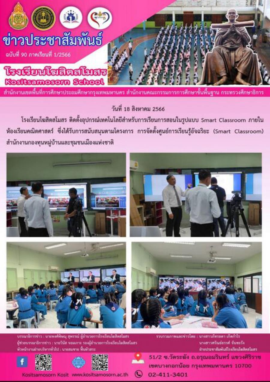 โรงเรียนโฆสิตสโมสร ติดตั้งอุปกรณ์เทคโนโลยีสำหรับการเรียนการสอนในรูปแบบ Smart Classroom ภายในห้องเรียนคณิตศาสตร์ ซึ่งได้รับการสนับสนุนตามโครงการ การจัดตั้งศูนย์การเรียนรู้อัจฉริยะ (Smart Classroom) สำนักงานกองทุนหมู่บ้านและชุมชนเมืองแห่งชาติ S:0