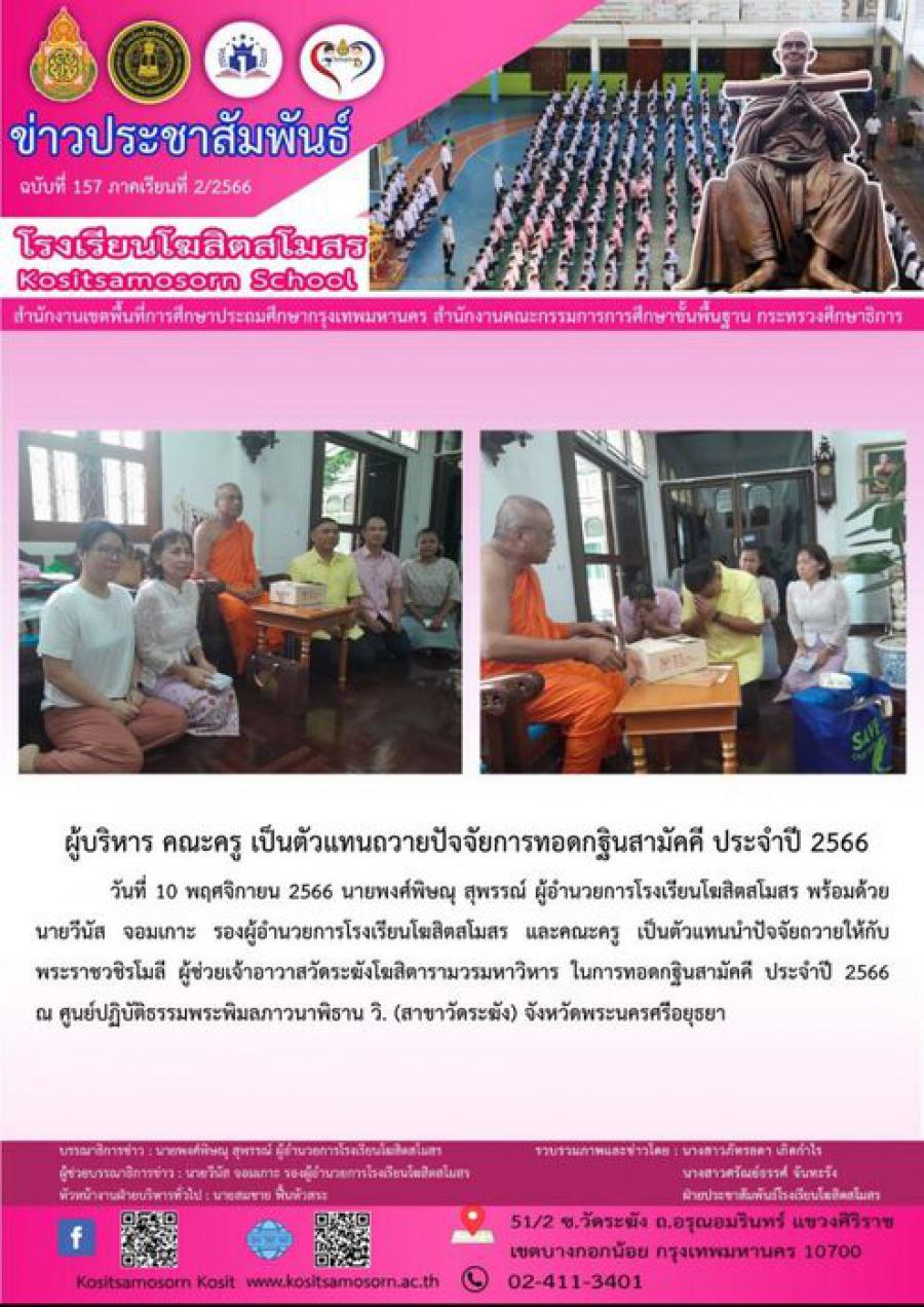 ผู้บริหาร คณะครู เป็นตัวแทนถวายปัจจัยการทอดกฐินสามัคคี ประจำปี 2566 S:0