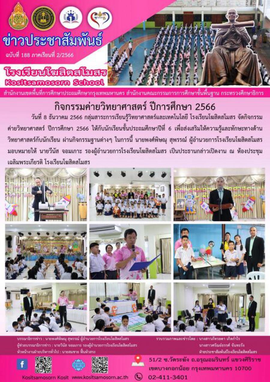 กิจกรรมค่ายวิทยาศาสตร์ ปีการศึกษา 2566 S:0