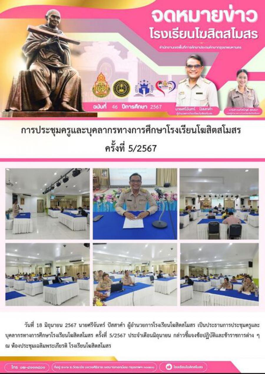 การประชุมครูและบุคลากรทางการศึกษาโรงเรียนโฆสิตสโมสร ครั้งที่ 5/2567 S:0