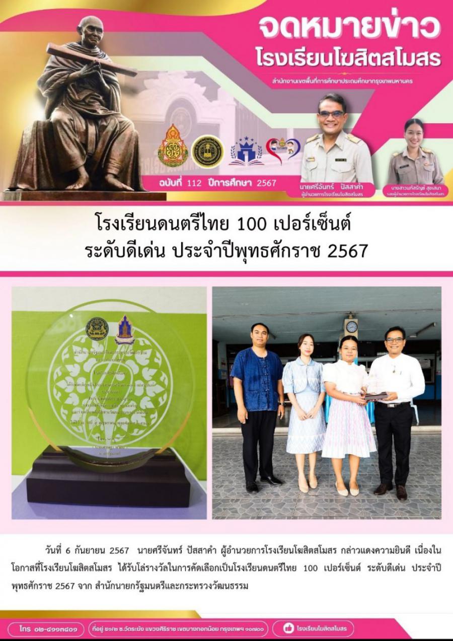 โรงเรียนดนตรีไทย 100 เปอร์เซ็นต์ ระดับดีเด่น ประจำปีพุทธศักราช 2567 S:0