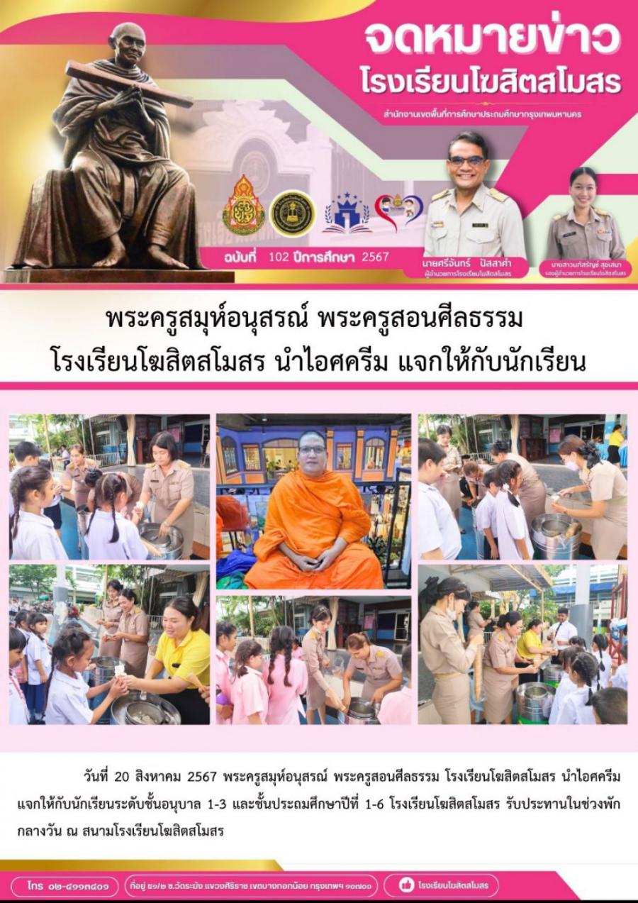 พระครูสมุห์อนุสรณ์ พระครูสอนศีลธรรม โรงเรียนโฆสิตสโมสร นำไอศครีม แจกให้กับนักเรียน S:0