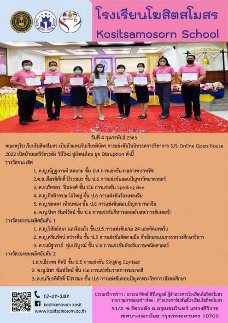 รับรางวัลแทนนักเรียน งาน S.R. Online Open House