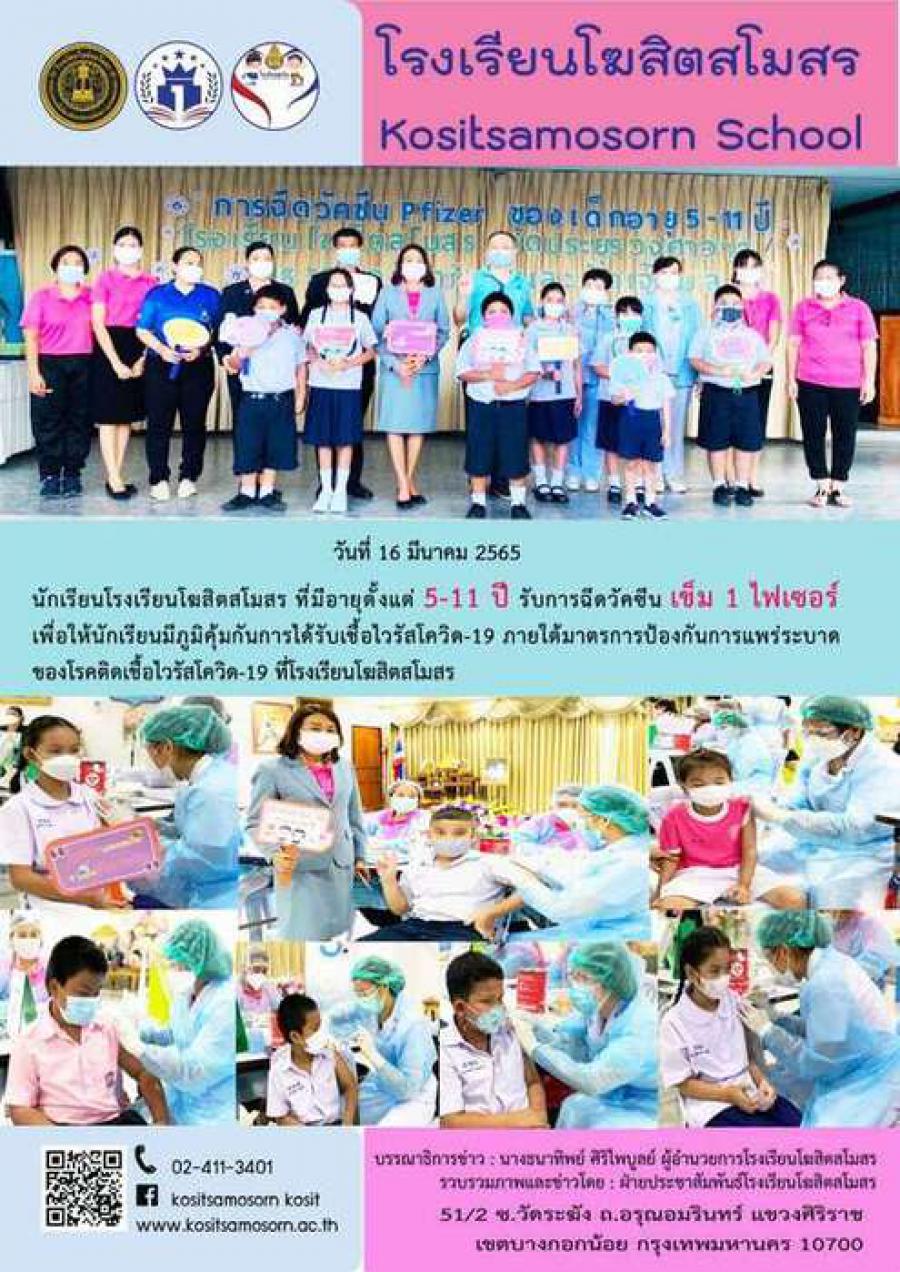 นักเรียนฉีดวัคซีน ไฟเซอร์ เข็ม 1
