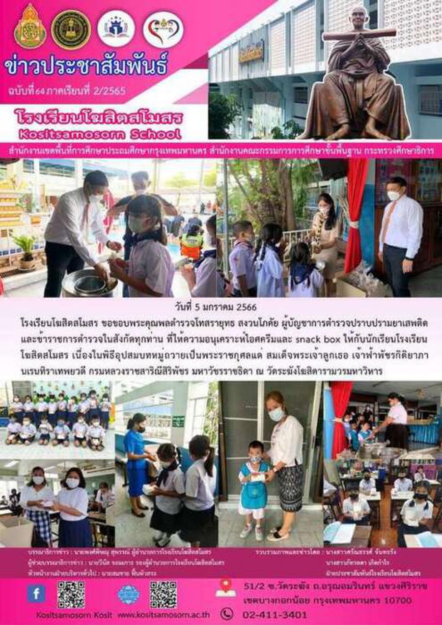 พลตำรวจโทสรายุทธ สงวนโภคัย ผู้บัญชาการตำรวจปราบปรามยาเสพติด อนุเคราะห์แจกไอศครีมและ snack bok ให้กับนักเรียนทุกๆคน S:0