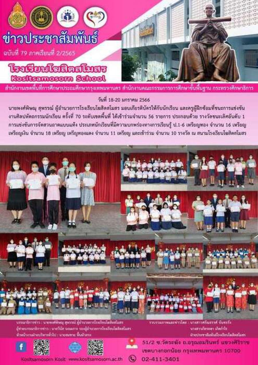 ผู้อำนวยการมอบเกียรติบัตรให้กับคณะครูและนักเรียนที่ได้รางวัลเข้าร่วมการแข่งขันศิลปหัตถกรรมนักเรียนครั้งที่70 S:0
