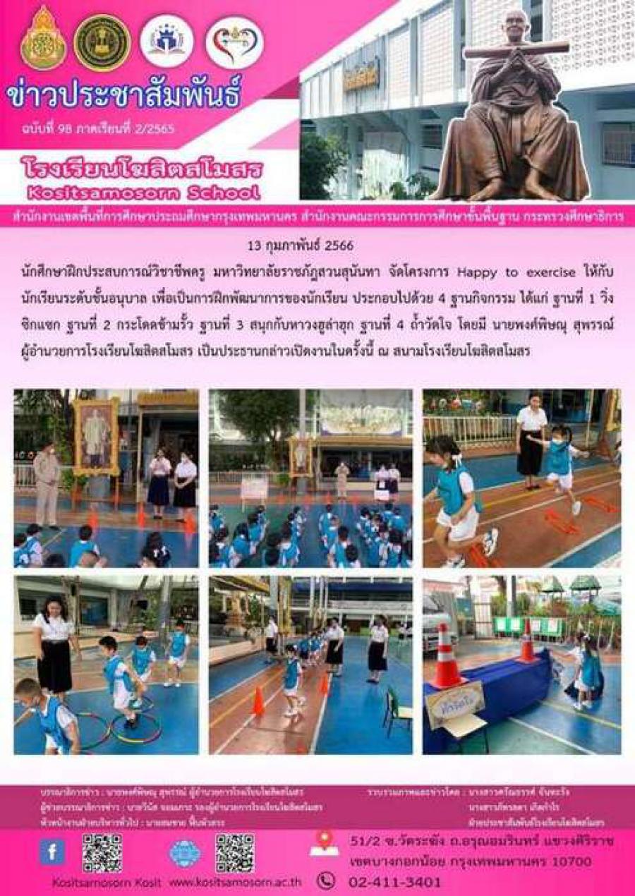 Happy to exercise โครงการสำหรับ นักเรียนระดับชั้นอนุบาลจัดโดย นักศึกษาฝึกประสบการณ์วิชาชีพครู