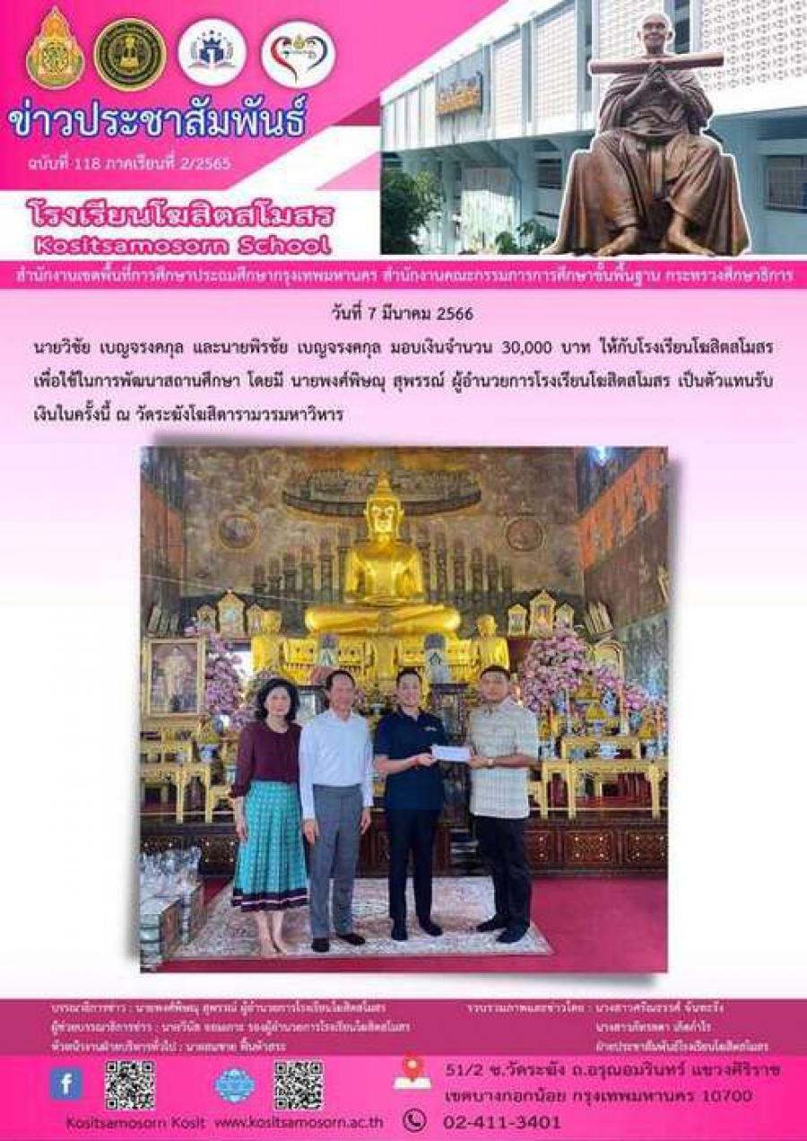 นายวิชัย เบญจรงคกุล และนายพิรชัย เบญจรงคกุล มอบเงินจำนวน 30,000 บาท ให้กับโรงเรียนโฆสิตสโมสร