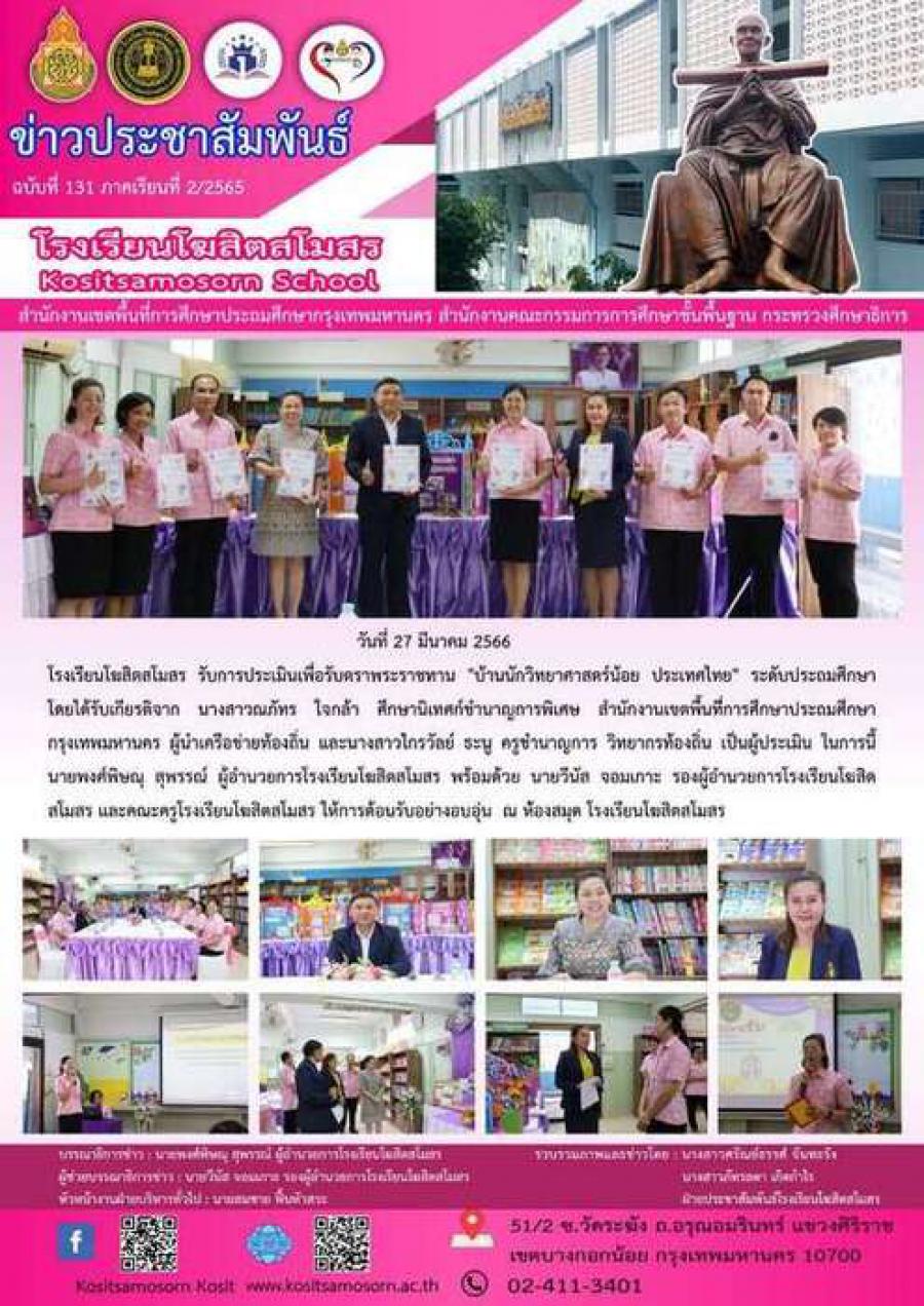 โรงเรียนโฆสิตสโมสร รับการประเมินเพื่อรับตราพระราชทาน "บ้านนักวิทยาศาสตร์น้อย ประเทศไทย" ระดับประถมศึกษา โดยได้รับเกียรติจาก นางสาวณภัทร ใจกล้า ศึกษานิเทศก์ชำนาญการพิเศษ สำนักงานเขตพื้นที่ิการศึกษาประถมศึกษากรุงเทพมหานคร ผู้นำเครือข่ายท้องถิ่น และนางสาวไกรวัลย์ ธะนู ครูชำนาญการ วิทยากรท้องถิ่น เป็นผู้ประเมิน ในการนี้ นายพงศ์พิษณุ สุพรรณ์ ผู้อำนวยการโรงเรียนโฆสิตสโมสร พร้อมด้วย นายวีนัส จอมเกาะ รองผู้อำนวยการโรงเรียนโฆสิตสโมสร และคณะครูโรงเรียนโฆสิตสโมสร ให้การต้อนรับอย่างอบอุ่น ณ ห้องสมุด โรงเรียนโฆสิตสโมสร S:0