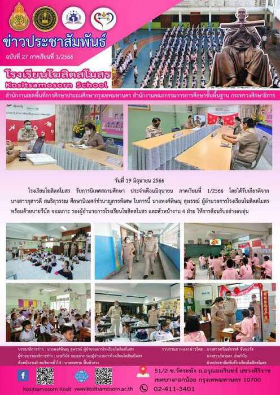 วันที่ 19 มิถุนายน 2566 โรงเรียนโฆสิตสโมสร รับการนิเทศสถานศึกษา ประจำเดือนมิถุนายน ภาคเรียนที่ 1/2566 โดยได้รับเกียรติจาก นางสาวกุสาวดี สนธิสุวรรณ ศึกษานิเทศก์ชำนาญการพิเศษ ในการนี้ นายพงศ์พิษณุ สุพรรณ์ ผู้อำนวยการโรงเรียนโฆสิตสโมสร พร้อมด้วยนายวีนัส จอมเกาะ รองผู้อำนวยการโรงเรียนโฆสิตสโมสร และหัวหน้างาน 4 ฝ่าย ให้การต้อนรับอย่างอบอุ่น S:0