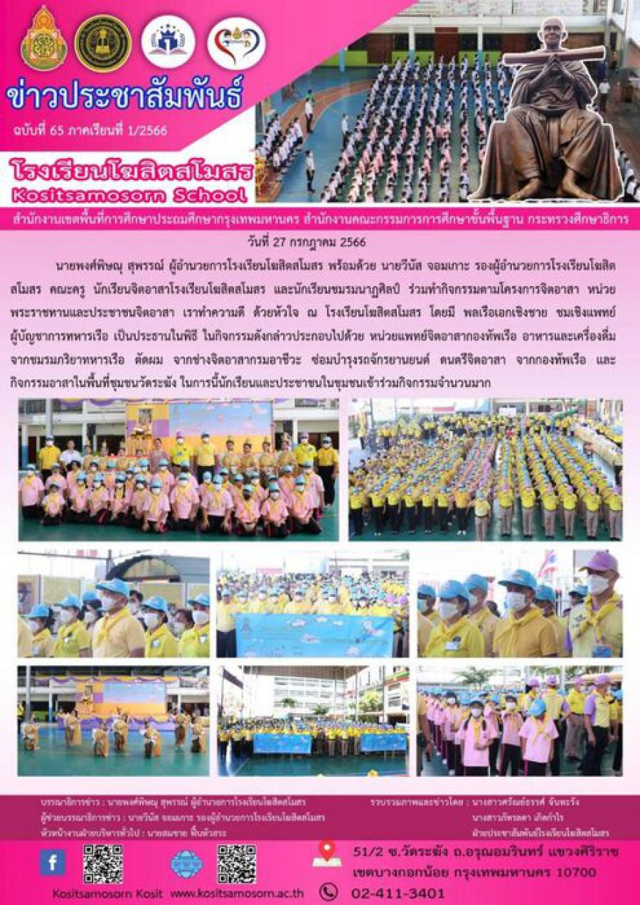 นายพงศ์พิษณุ สุพรรณ์ ผู้อำนวยการโรงเรียนโฆสิตสโมสร พร้อมด้วย นายวีนัส จอมเกาะ รองผู้อำนวยการโรงเรียนโฆสิตสโมสร คณะครู นักเรียนจิตอาสาโรงเรียนโฆสิตสโมสร และนักเรียนชมรมนาฏศิลป์ ร่วมทำกิจกรรมตามโครงการจิตอาสา หน่วยพระราชทานและประชาชนจิตอาสา เราทำความดี ด้วยหัวใจ ณ โรงเรียนโฆสิตสโมสร โดยมี พลเรือเอกเชิงชาย ชมเชิงแพทย์ ผู้บัญชาการทหารเรือ เป็นประธานในพิธี ในกิจกรรมดังกล่าวประกอบไปด้วย หน่วยแพทย์จิตอาสากองทัพเรือ อาหารและเครื่องดื่ม จากชมรมภริยาทหารเรือ ตัดผม จากช่างจิตอาสากรมอาชีวะ ซ่อมบำรุงรถจักรยานยนต์ ดนตรีจิตอาสา จากกองทัพเรือ และกิจกรรมอาสาในพื้นที่ชุมชนวัดระฆัง ในการนี้นักเรียนและประชาชนในชุมชนเข้าร่วมกิจกรรมจำนวนมาก S:0