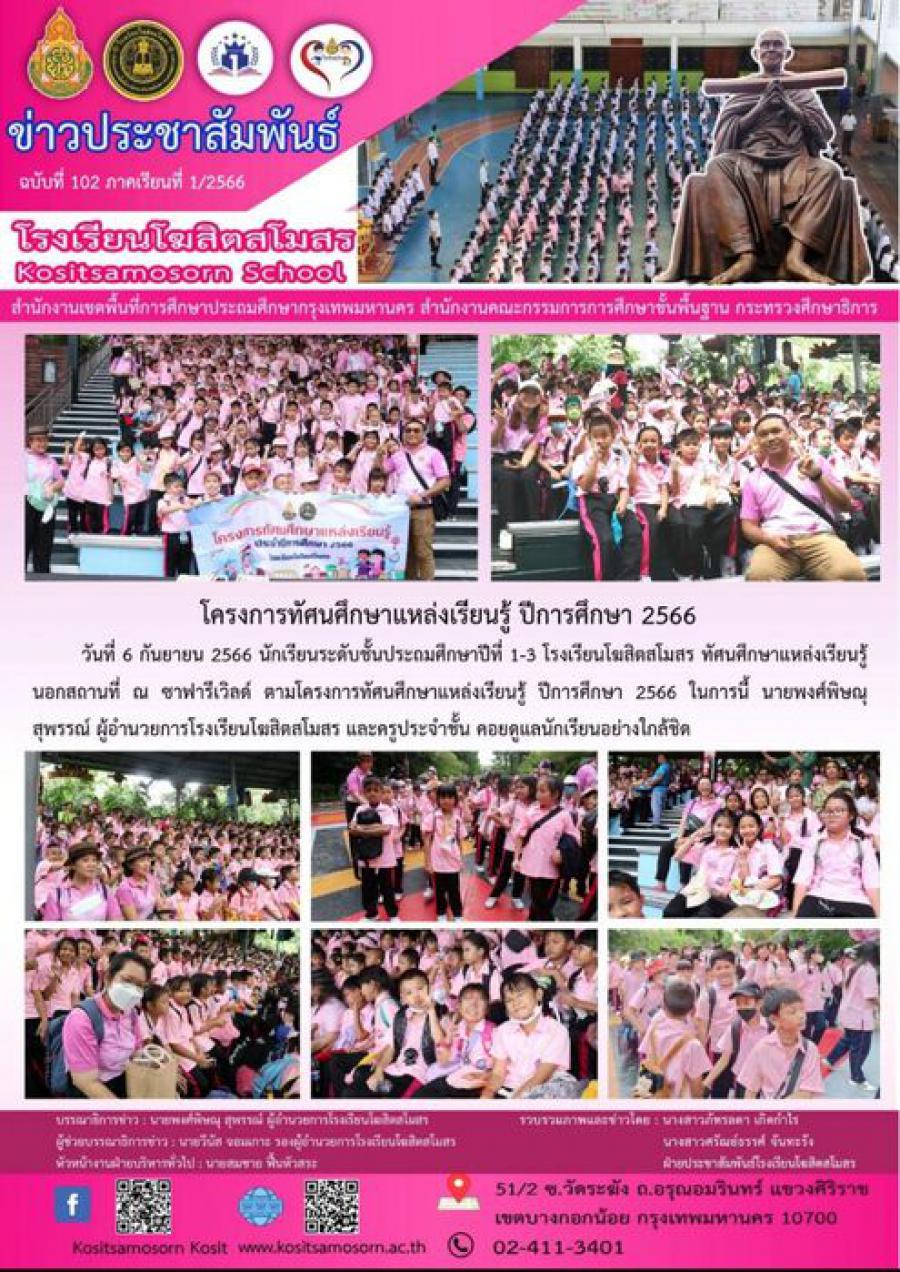 ตามโครงการทัศนศึกษาแหล่งเรียนรู้ ปีการศึกษา 2566 วันที่ 6 กันยายน 2566 นักเรียนระดับชั้นประถมศึกษาปีที่ 1-3 โรงเรียนโฆสิตสโมสร ทัศนศึกษาแหล่งเรียนรู้นอกสถานที่ ณ ซาฟารีเวิลด์ ตามโครงการทัศนศึกษาแหล่งเรียนรู้ ปีการศึกษา 2566 ในการนี้ นายพงศ์พิษณุ สุพรรณ์ ผู้อำนวยการโรงเรียนโฆสิตสโมสร และครูประจำชั้น คอยดูแลนักเรียนอย่างใกล้ชิด S:0
