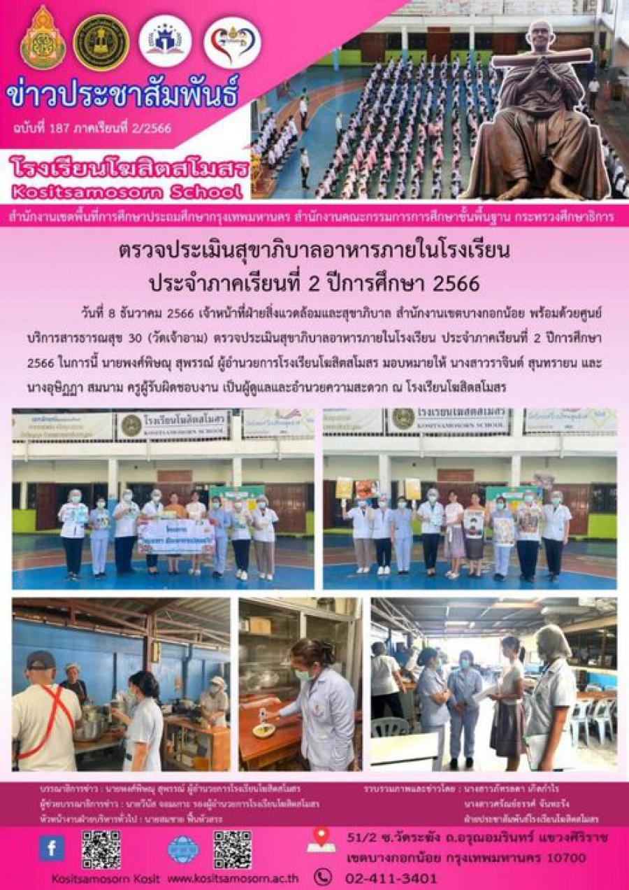 ตรวจประเมินสุขาภิบาลอาหารภายในโรงเรียน ประจำภาคเรียนที่ 2 ปีการศึกษา 2566 S:0