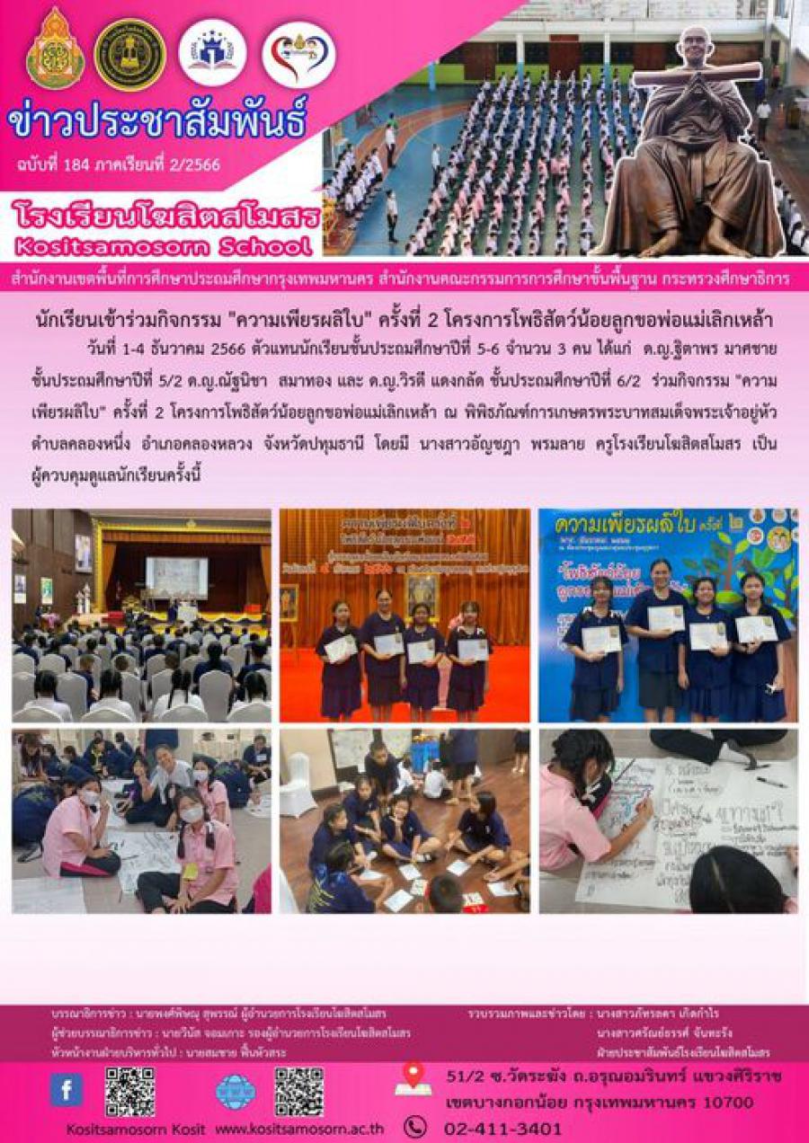 นักเรียนเข้าร่วมกิจกรรม "ความเพียรผลิใบ" ครั้งที่ 2 โครงการโพธิสัตว์น้อยลูกขอพ่อแม่เลิกเหล้า