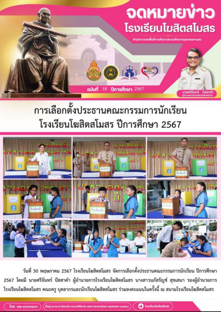 การเลือกตั้งประธานคณะกรรมการนักเรียน โรงเรียนโฆสิตสโมสร ปีการศึกษา 2567