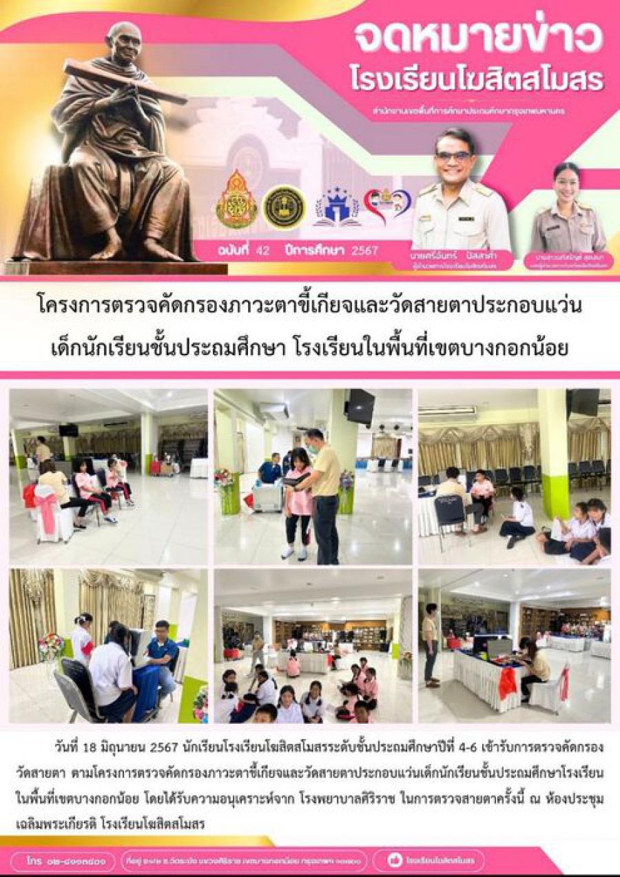 โครงการตรวจคัดกรองภาวะตาขี้เกียจและวัดสายตาประกอบแว่น เด็กนักเรียนชั้นประถมศึกษา โรงเรียนในพื้นที่เขตบางกอกน้อย