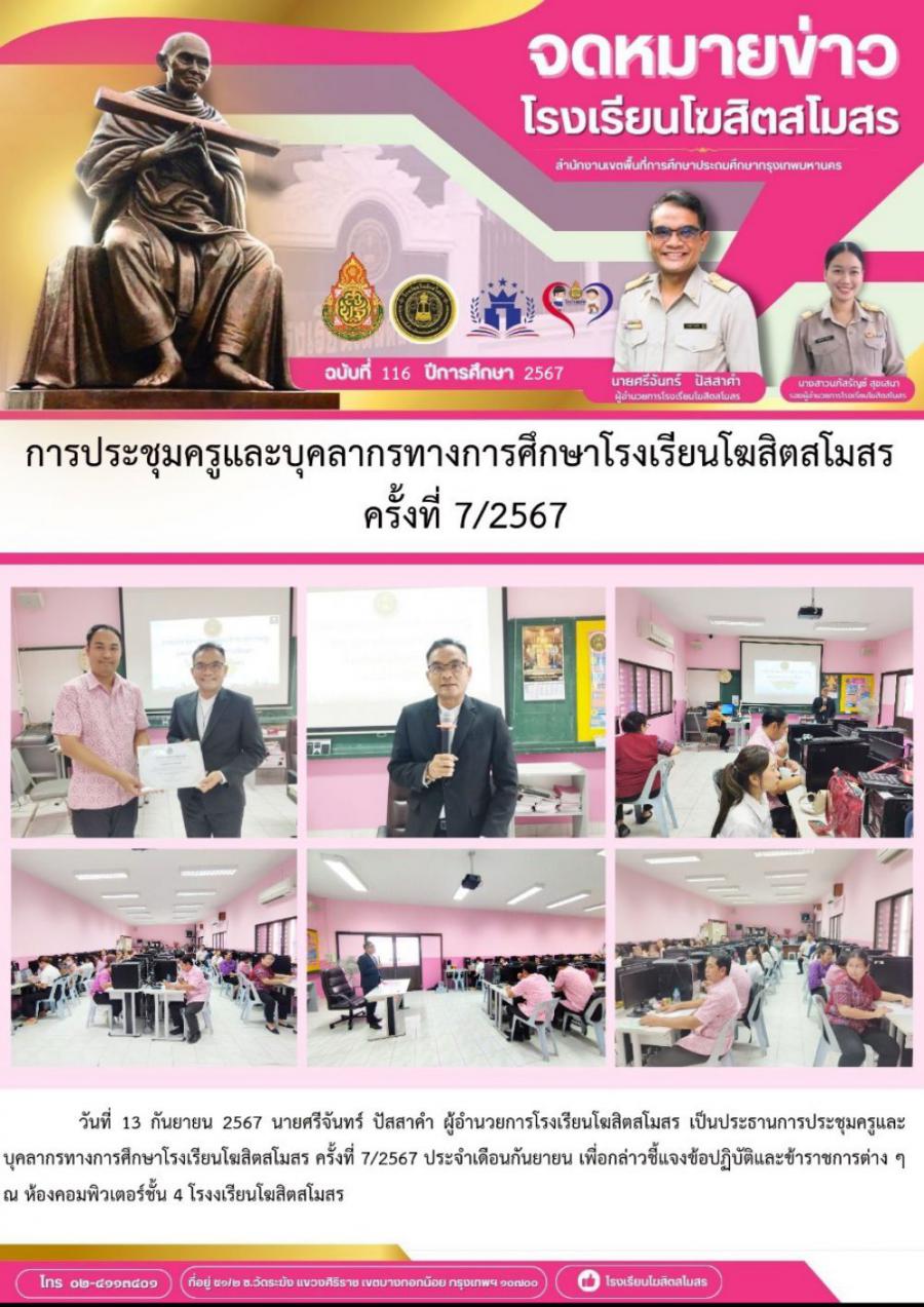 การประชุมครูและบุคลากรทางการศึกษาโรงเรียนโฆสิตสโมสร ครั้งที่ 7/2567 S:0
